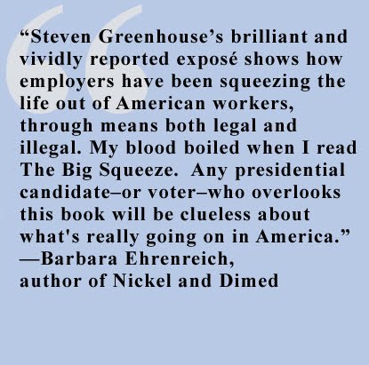 “We've read Upton Sinclair’s The Jungle, and Studs Terkel’s Working and perhaps even Barbara Ehrenreich’s Nickel and Dimed. None of these—not even these combined—prepare you for The Big Squeeze, written by Steven Greenhouse, the New York Times’ workplace and labor reporter since 1995. Marrying the best of these authors with deep research and meticulous reporting, he brings the picture of the American worker up to date and in sharp focus.”—Buffalo News